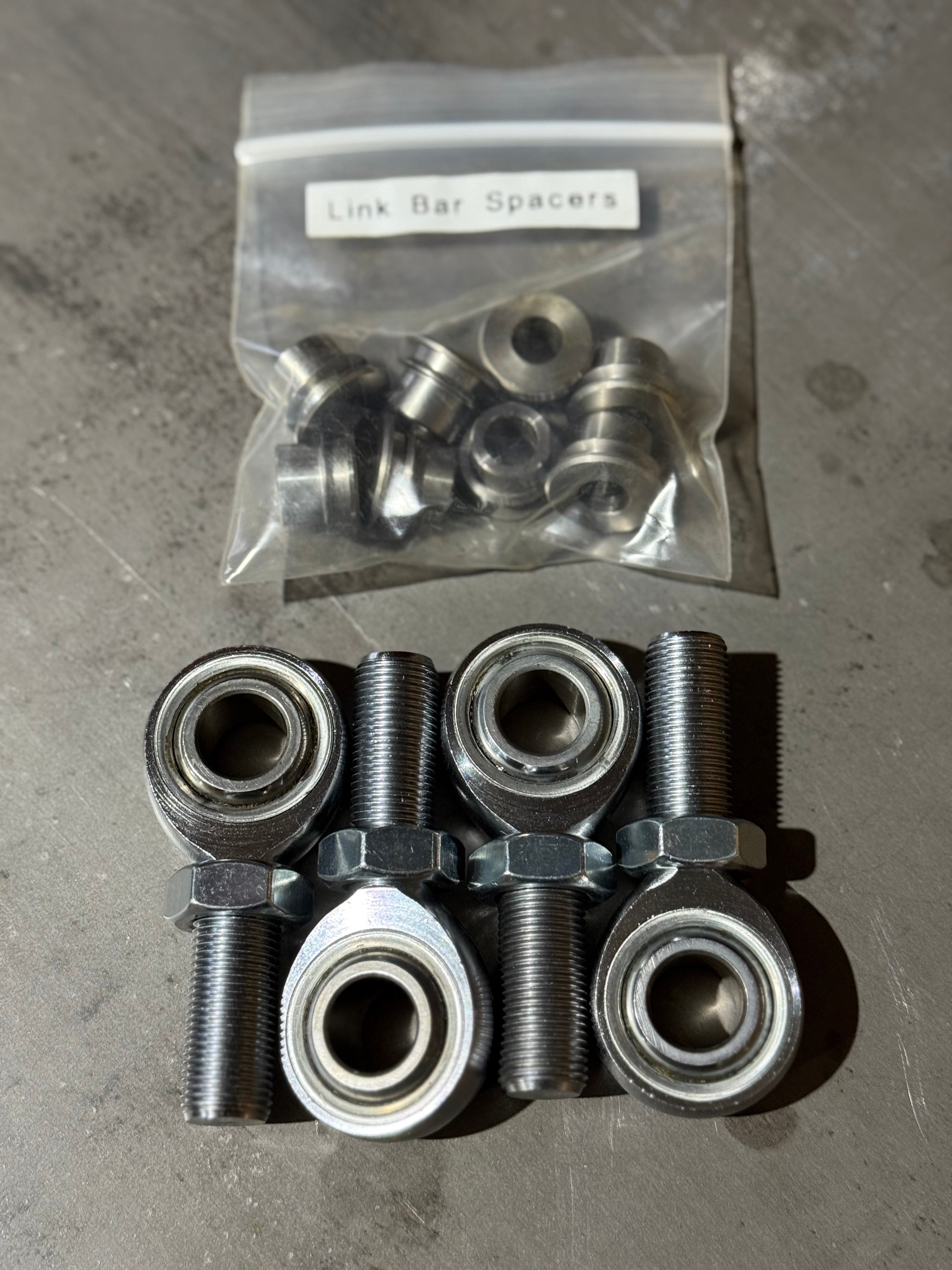 Replaces Fuel Fab front Link Bar inner & outer rod ends & stainless steel spacers